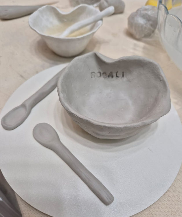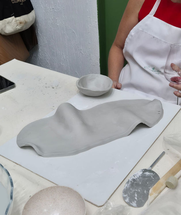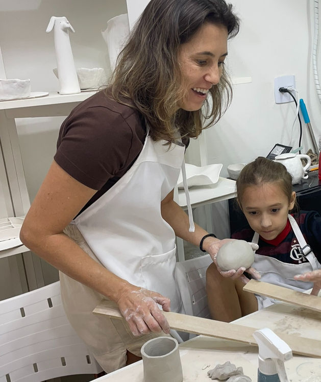 Está incluso no valor da aula: 1kg de massa por aula, uso do torno, ferramentas de modelagem e avental do ateliê, queima do biscoito.